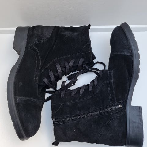 Støvlerne har skridhæmmende såler og fremstillet i ruskind med et tyk og varmt foer. Fejlkøb og ubrugte, som fremgår af fotos.