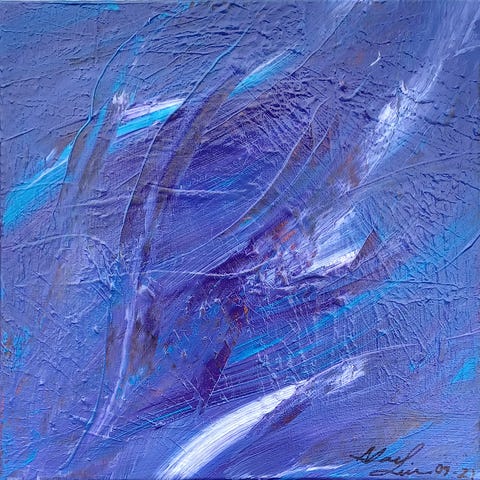 Billedkunstneren og koloristen Marianne Lykkeberg har malet dette akvarelmaleri med abstrakt motiv af en blå stenbider fra Saltistraumen i Nordnorgeforskellige .Maleriet har et levende og ekspressivt,poetisk udtryk med blå, røde, gule og grønne nuancer på akvarelpapir. og billedet symboliserer denne dybhavsfisk Hugo i sine omgivelser på bunden af fjorden.