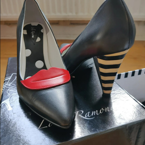 Stiletter, str. 36, Lola Ramona, Rød. Pink. Lyserød. Lilla. Gul. Lys beige, Læder. Træ. Gummi, Næsten som ny, Lola Ramona