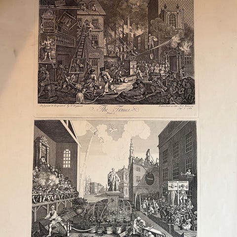 Originalt kobberstik af den berømte britiske satiriker og kunstner William Hogarth (1697–1764).