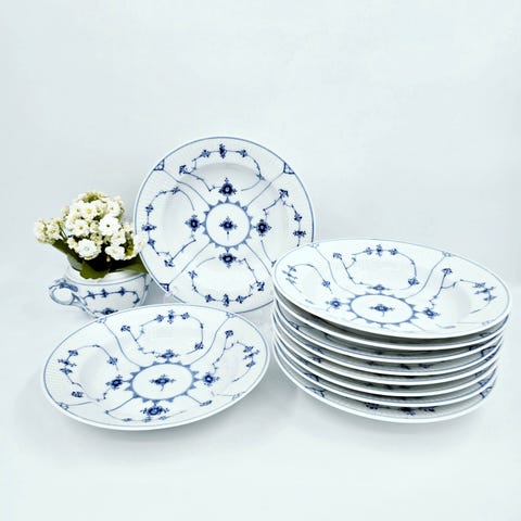 Her har vi den største dybe tallerken, der er produceret i Musselmalet, den oplagte Pastatallerken, men det er jo blevet super moderne og bruge dybe til forretter eller desserter, der er også nogen som ynder og spise gryderetter af dybe, så du bliver meget glad for dem i din borddækning🥰