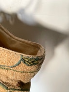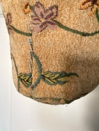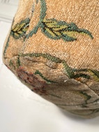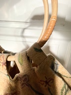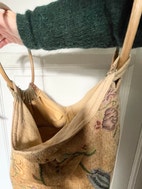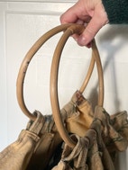 Det ene håndtag fremstår uden ‘banderole’ (se foto) - man kan evt. påvikle et stykke stof / stofbånd eller garn, der matcher til farverne i stoffet 🍁
