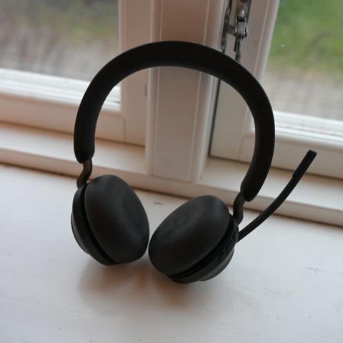 Jabra trådløse over-ear hovedtelefoner i sort farve. Inkluderer opladningskabel og USB-modtager til trådløs forbindelse. Designet til komfortabel brug med justerbar hovedbøjle og ørepuder. Velegnet til privat og professionel brug med trådløs funktionalitet.