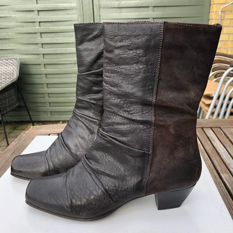 Støvler, str. 41, Santita (Dansk design), Mørk brun (chokolade), skind/træ, Næsten som ny, Santita træskostøvler dame.