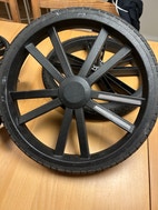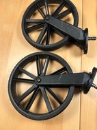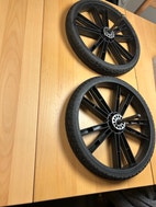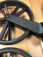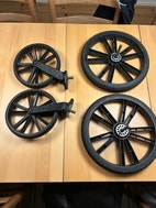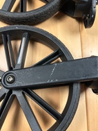 Komplet og velfungerende hjulsæt til Odder vida barnevogn. Der er lidt ridser på hjulene, men det er udelukkende kosmetisk. Kom endeligt med et bud.