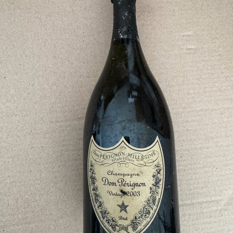 Champagne i uåbnet og plomberet original kasse. Alm flaske 750 ml - tror jeg. Jeg har aldrig set selve flasken. Sendes ikke - skal afhentes i Sorø. Gi’ evt et bud.