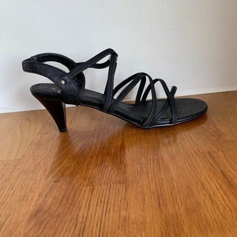 Sandaler, str. 39, DANIEL HECHTER, Sort + guld, Skind, God men brugt, Skind sandaler i guld og sort med slange præg i det sorte og fine spænder på ydersiden af de gyldne remme.