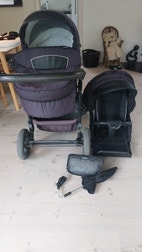 Medfølger: tyk ekstra madras fra babydan, regnslag, solparasol og sikkerhedssele.