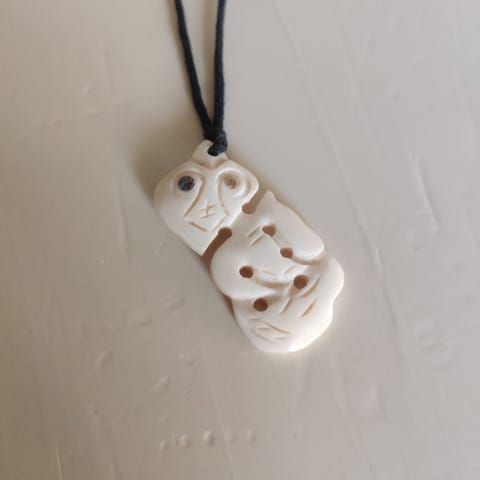 Smuk halskæde fra New Zeland med paua skal Der medfølger øreringe, men da den ene desværre er uden skal, sælges det bare som en halskæde.
