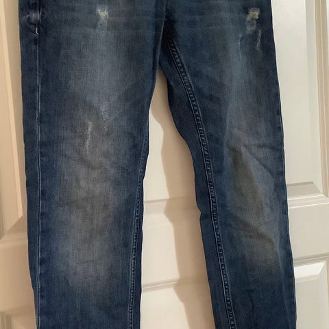Pæn cowboybukser er brugt lidt men har ikke nogen slidt. Lidt farven er falme med vask.,