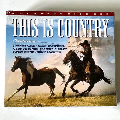 All Time Greatest Country Songs CD samling med to disker. Inkluderer kjente artister som Kenny Rogers, Bob Dylan, Patsy Cline, Billy Ray Cyrus, John Denver, Big Fat Snake, Henning Stærk, Dolly Parton, Charlie Rich, Johnny Cash, Erik Kristoffersen, John Mayall og flere. Passer for fans av countrymusikk.