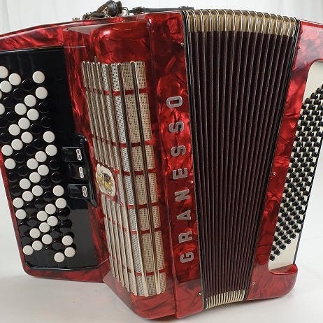 Hohner Morino Artiste Akkordeon/knapharmonika. Transportkasse medfølger. Smuk klang til både jazz, klassisk, folkemusik, pop og meget andet god musik. Velegnet til både øvede og begyndere. Kom og prøv at spille på dette fænomenale instrument.