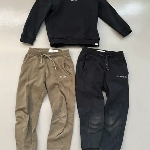 Sorte sweat bukser 122-128 slid ved numse, hul ved det ene knæ.