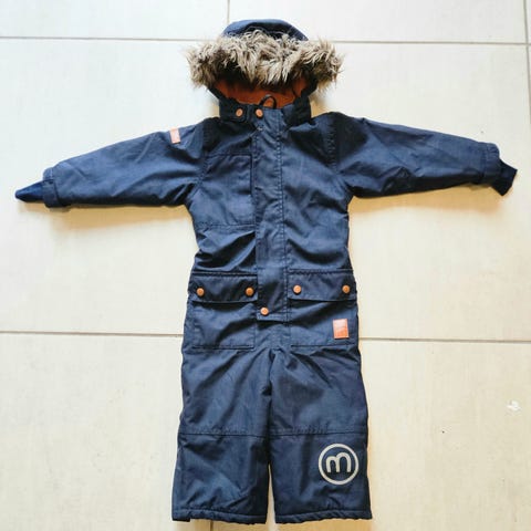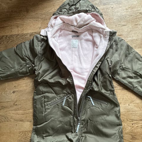 NY Minymo flyverdragt, str 140, i grågrøn med lyserødt foer