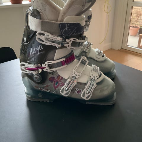Dalbello Raya skistøvler i str. 24,5 svt. str 38. Komfortabel og formbar inderstøvle med skråtstillede spænder, der giver et optimalt hælhold. Walk funktion og varme forberedt
