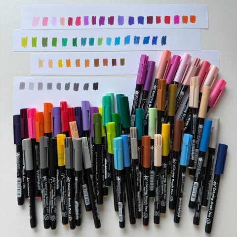 tuscherne er kun brugt til max 10 siders malebog og så at lave swatches.