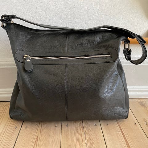 Tasken har et udvendigt rum, 3 indvendige rum, det ene m lynlås.