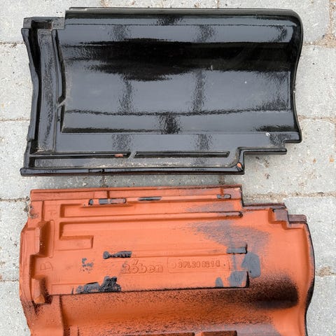 ca 100 stk. Sort silkemat glaseret. Tagstenene har stået ude i ca 13 år. Umiddelbart har de ikke taget skade, udover afslag på et par enkelte sten. Købes som beset.