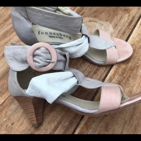 Sandaler, str. 41, Fonnesberg made in Italy, Lys beige, Skind, kork og gummisål, Ubrugt, Helt nye skindsandaler med høj sål i kork og gummi og med ruskindssål på toppen. Remmene over og omkring foden er af skind.