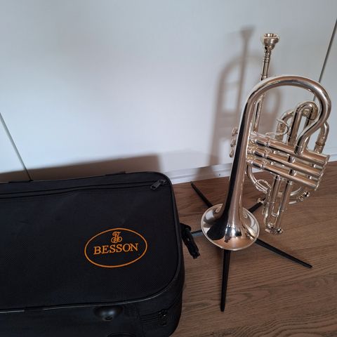 Fantastisk velklingende instrument. Instrumentet fremtræder som nyt. Lakeringen er perfekt bortset fra omkring den ene spøtventil. Ingen tæring overhovedet. Der er et par små mærker på stemmebøjlen. Ventilerne går som de skal og ligeså bøjlerne. Instrumentet har været omkring instrumentmager for et par år siden for at blive gennemgået - ingen reparationer. Kasse medfølger, desuden medfølger Denis Wick mundstykke nr 2.