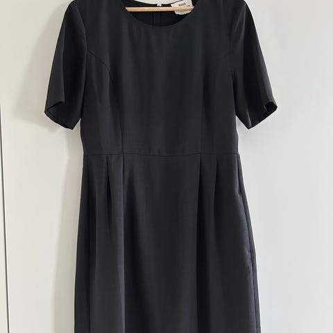 Mads Nørgaard Hverdagskjole i størrelse S, farven rød. Kjolen har lange ærmer og en elastisk talje, der giver pasform.
