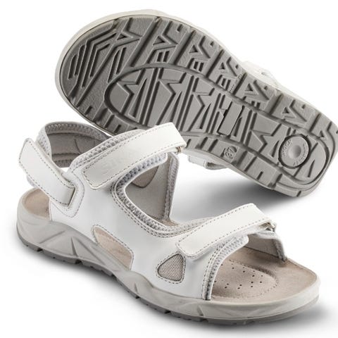 Let og komfortabel sandal med dobbelt, justerbar Velcro® lukning. Af åndbart og slidstærkt Permair® læder og med en skridhæmmende og stødabsorberende ydersål af , som samtidig minimerer risikoen for vridskader. Stødabsorberende og åndbar indlægssål af let og antibakterielt materiale. Vaskbar ved 30 °C. Inderfór af svedtransporterende, åndbart og slidstærkt materiale