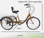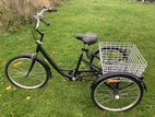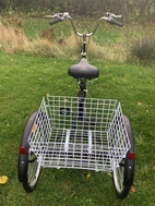 Fabriksny flot trehjulet Senior / Voksencykel! Cyklen er hentet i Tyskland. God kvalitet, med meget alu og rustfri stål. Cyklen har en rigtig fin voksen størrelse med 24" hjul og kraftige dæk - se modelfoto (det sidste) med mål. Billigste nye seniorcykel med gear i DK!
