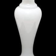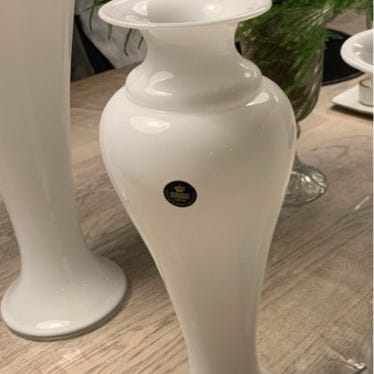 Den har en slank, elegant form i opalglas med et overfang af klart krystal.
