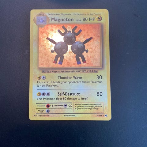 Pokémon Magneton samlekort med 80 HP. Kortet har angrebene Thunder Wave og Self-Destruct med angivne skadesværdier. Kortet er i god stand med synlige detaljer på forsiden og bagsiden.