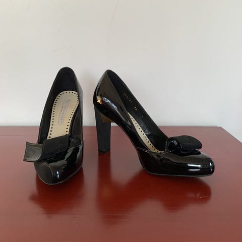 Stiletter, str. 37, Stella McCartney , Mærk grå, Lak, Næsten som ny, Lækker mørk grå laksko med guld detalje ved hæl. 8 cm hæl