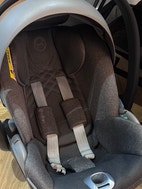 CYBEX autostol i grå farve. Autostolen er designet til at sikre barnets komfort og sikkerhed under transport. Den har et ergonomisk design med justerbar bærehåndtag og polstrede sider. Materialet er holdbart og let at rengøre. Passer til spædbørn og små børn.