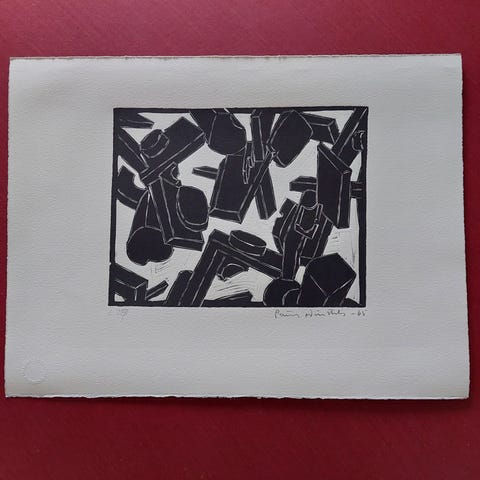 Super fedt linoleumstryk af kunstneren Poul Winther
