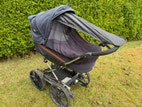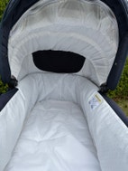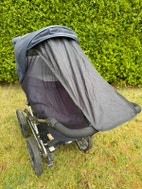 Der er myggenet/solsejl indbygget i kalechen samt ventilation.