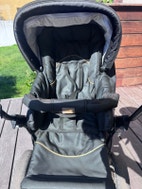 Klapvognsdel i fin stand med brugsspor, fungerer upåklageligt med sele, overdække, indbygget myggenet og solsejl.