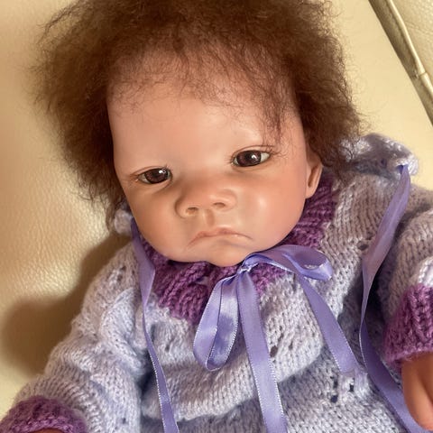 JULEGAVETILBUD Reborn baby sælges , med ægte flotte glasøjne sælges. Hun er ny ingen slidtage , der kommer en del tøj med til hende. Hun er skulptureret af Romies strytum. Hun er nr 210- ud af 800 der er lavet. Sarifikat følger med. Røgfrit hjem jeg sender gerne, kan også afhentes på adressen