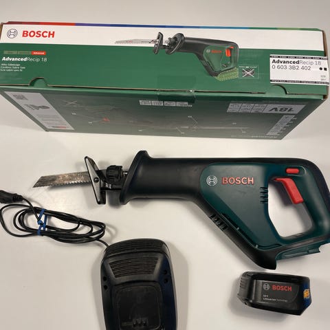 Bosch bajonetsav med en klinge. Batteri og batterilader. Kun brugt en gang. Fejlkøb