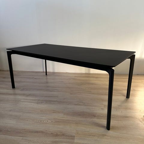 Smukt og enkelt spisebord fra Eva Solo "Taffel" hedder modellen. Nu under brandet "Please wait to be seated". Det er den mørkegrønne linoleum farve, med sorte lakeret ben. Et bord som kan passe ind i en hver indretning da det også kommer i tre forskellige størrelser samt 2* tilhørende tillægsplader.