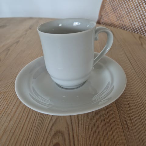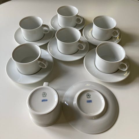 Royal Copenhagen kaffekop og underkop sæt i hvidt porcelæn. Sættet indeholder 7 stk kaffekopper m/underkop pr. sæt 40 kr. og 12 stk espresso kopper med underkop pr. sæt 30 kr. Sættet er velegnet til daglig brug og servering af varme drikke. Ingen skår, har aldrig været i opvaskemaskine. Sendes ikke men kan afhentes enten i Herning eller Vanløse