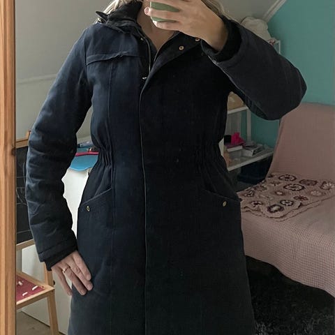 Super dejlig varm frakke, den er som ny, da jeg ikke kan passe den.