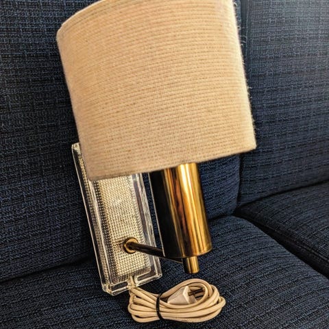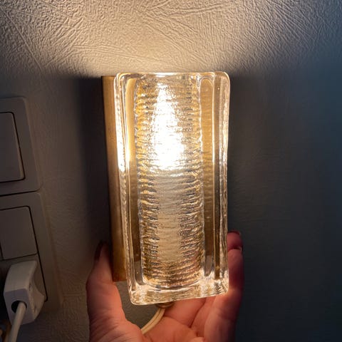 Flot VITRIKA ATLANTIC lampe til væg med originalledning, mål 26 x 7 x 7,5 cm . Giver et super flot lys, ca 60 år gammel, glas står som nyt, bronzeramme har lidt brugsspor (bag glas).
