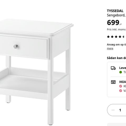 Lækkert sengebord. Nypris 1.200. Aldrig brugt.