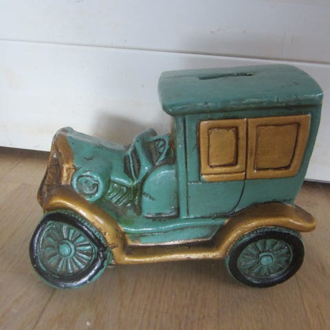 Sparebøsser – ”biler” – gul bil – 10 cm lang – 6 cm høj
