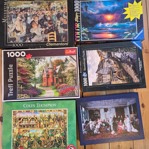 Vintage puslespil med 1000 brikker. Motivet forestiller Venedig. Måler 44x68 cm. Jeg har samlet puslespillet, og alle brikkerne er der. Et ret svært puslespil, da farverne er meget ens og ikke helt passer til farverne på motivet på æsken. Næsten som ny, meget få pletter på enkelte brikker.