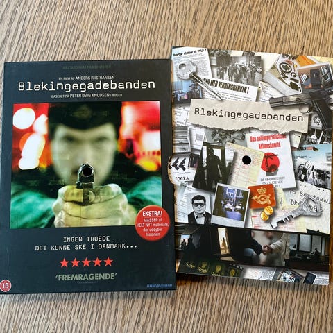 Blekingegade Film DVD med Ulrich Thomsen, Nikolaj Coster-Waldau og Thure Lindhardt. Filmen omhandler historien bag Blekingegadebanden og deres aktiviteter i Danmark.