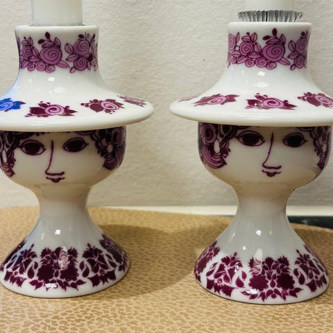 Bjørn Wiinblad, 2 lysestager i blå og hvid porcelæn