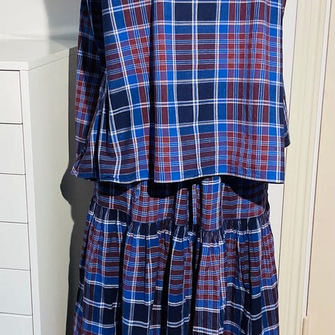 Muji navyblå chinos i str. XS. 95% bomuld, 5% elastan. Taljemål: ca. 66 cm. Benlængde fra skridtet: ca. 72 cm. Brugt, men gode.