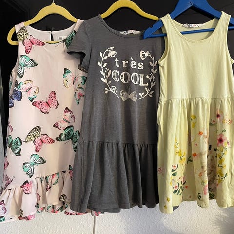Kjoler i størrelse 134-140 til pige i rigtig god stand. Kjolerne er multifarvede og inkluderer forskellige designs. Velegnet til daglig brug og tilpasset børns komfort og bevægelsesfrihed.