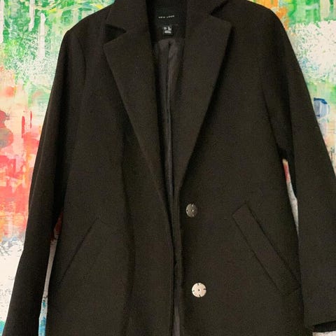 New Look Frakke i beige farve, størrelse 40 til damer. Jakken har en klassisk design med en enkelt knap foran og to lommer med klap. Materialet er blødt og velegnet til køligere vejr.