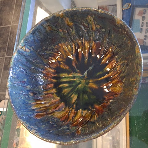 Flor grøn rillet skål fra kendte Pierre D'avesn. Desværre usigneret. Men der er nogle af hans ting