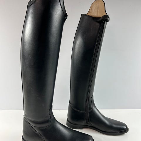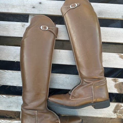 Mega flotte dressurstøvle fra Cavallo i modellen Insignis. De er ca. 2 år gamle har tegn på slid men er stadig super flotte at kigge på og fejler intet. Lynlåsen virker også stadig. Ny pris i dag er ca. 5000kr. De er i størrelsen 6 1/2 som ca. er en EU 38 i følge hjemmesiden ( jeg ville dog sige de mere er end 39-39 1/541 ca.). Støvlehøjden er 48cm og lægomkreds 36 cm. Det er modelnummer 187200.
